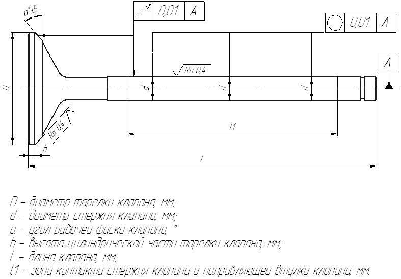 Відновлення робочої фаски тарілки клапана проводиться за рахунок висоти циліндричної частини тарілки клапана h до допустимого значення(рекомендації виробників ДВС).