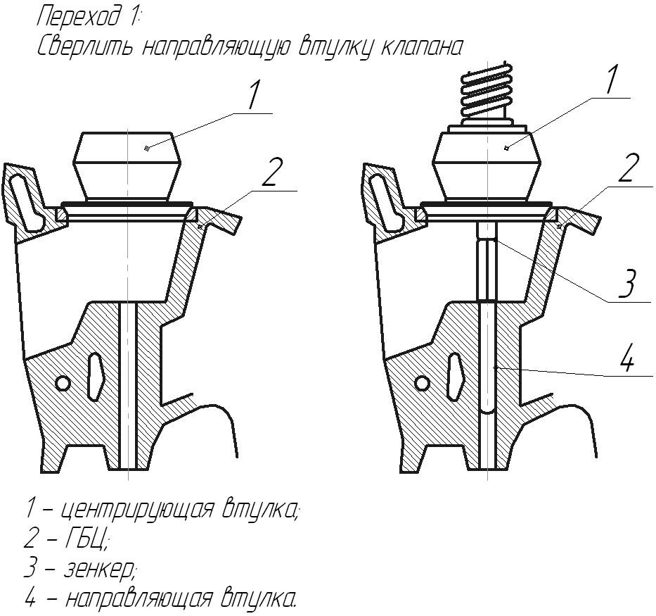 • у разі коли конструктивно ГБЦ виконана так, що направляючі втулки клапана вилиті цілісно з тілом ГБЦ, що саме по собі виключає демонтаж н.в.к., а припускає замовлення нового комплекту клапанів зі збільшеним ремонтним діаметром стержня клапана і механічну обробку внутрішнього діаметру н.в.к. на ремонтний розмір, або складну механічна операцію по розточуванню отворів і формуванню посадочного місця під змінні н.в.к. Зрештою еволюція ремонту, такої конструкції ГБЦ, приведе до затягування термінів ремонту і або установці змінних н.в.к.