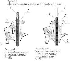 Беремо бронзовий вкладиш, розрахункового розміру(розрахунок проводиться з урахуванням теплового проміжку з витримкою необхідного перекриття розмірів - "натягу"), одягаємо в адаптер заходной фаской вкладиша убік н.в.к. Забиваємо пневматичним молотком бронзовий вкладиш в направляючу втулку(з боку сідел клапанів) зі збільшеним внутрішнім діаметром, таким чином, що б бронзовий вкладиш виходив з направляючої втулки з двох сторін - на однакову величину.