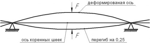 При вигині осі колінчастого валу від 0,08 до 0,40 мм шийки шліфують в наступні ремонтні розміри 0,25 мм; 0,50 мм; 0,75 мм; 1,0 мм; (За наявності ремонтних розмірів. Інакше міняється колінчастий вал на новий).