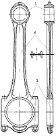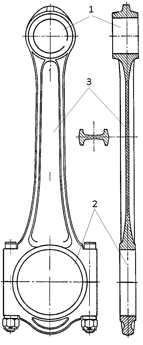Connecting rod general view: 1 – top rod end; 2 – bottom rod end; 3 – rod body