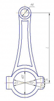 A connecting rod consists of a top small end, a body and a bottom big end. A bronze bush that is used as a piston pin bearing pressed into the small end. Oil is fed into the bearing under pressure through the channel in the rod body or by splashing through holes in the rod top end.